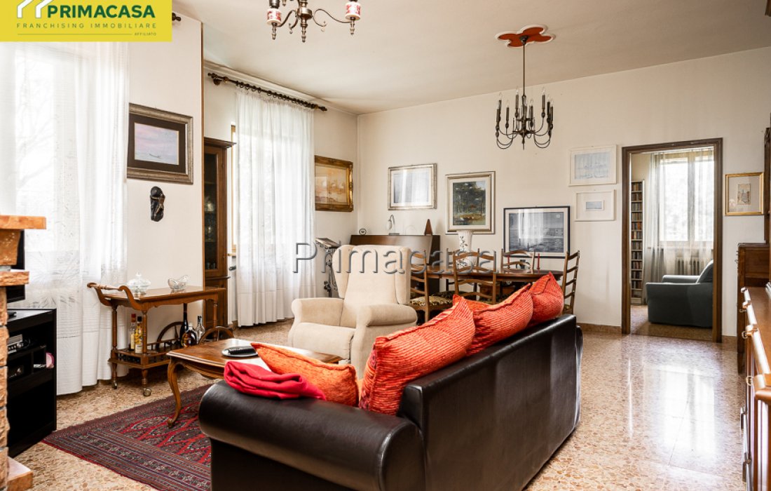 A pochi passi da Casette di San Martino Buon Albergo, ai piedi delle colline, ampio appartamento in bifamiliare al piano terra con giardino privato, composto da ingresso, spazioso soggiorno con camino, cucina, 3 camere, studio, 2 bagni finestrati e terrazzo abitabile. Cantina e garage doppio. Rif. 2873
