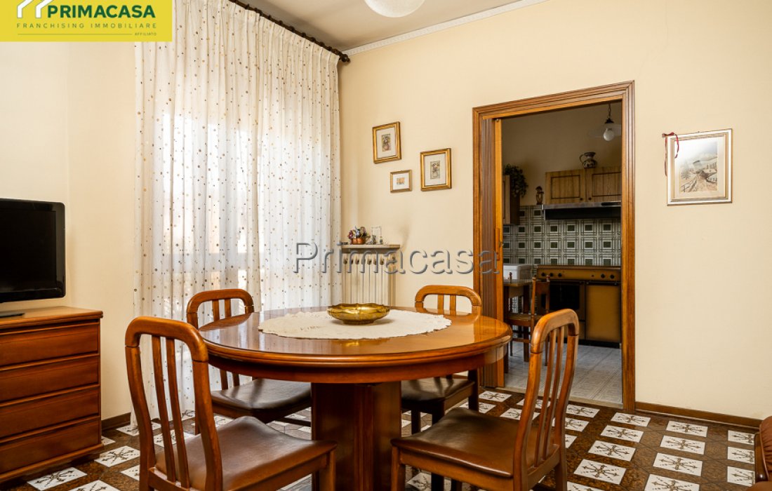 In zona centrale, a pochi passi da tutti i servizi di prima necessità, in quadrifamiliare, ampio appartamento da ristrutturare al piano primo composto di ingresso, soggiorno, cucina abitabile, 3 camere di cui 2 matrimoniali, bagno, ripostiglio e 2 balconi. Posto auto coperto doppio in lunghezza e cantina al piano interrato. Tetto rifatto nel 2025. Rif. 2813