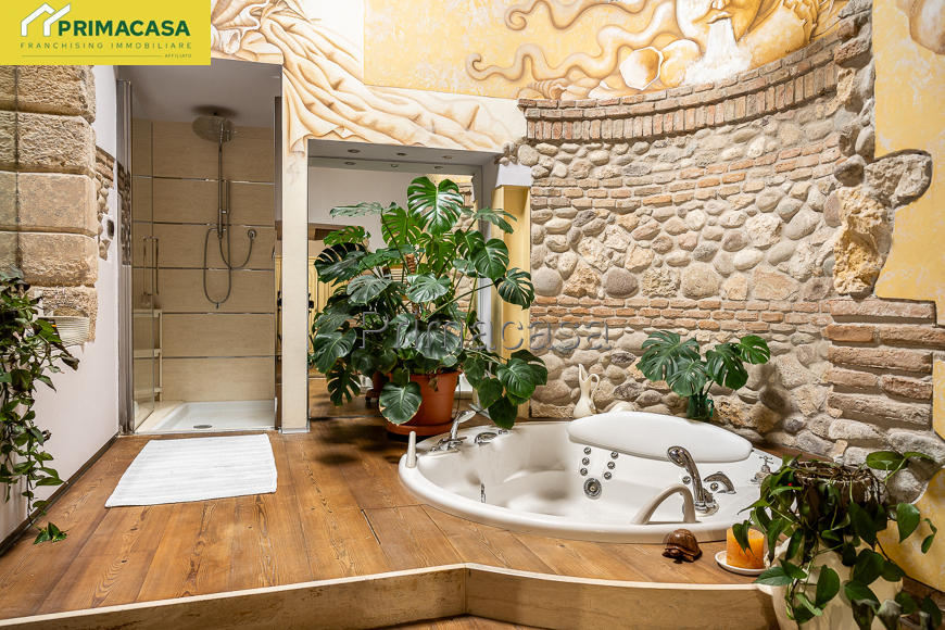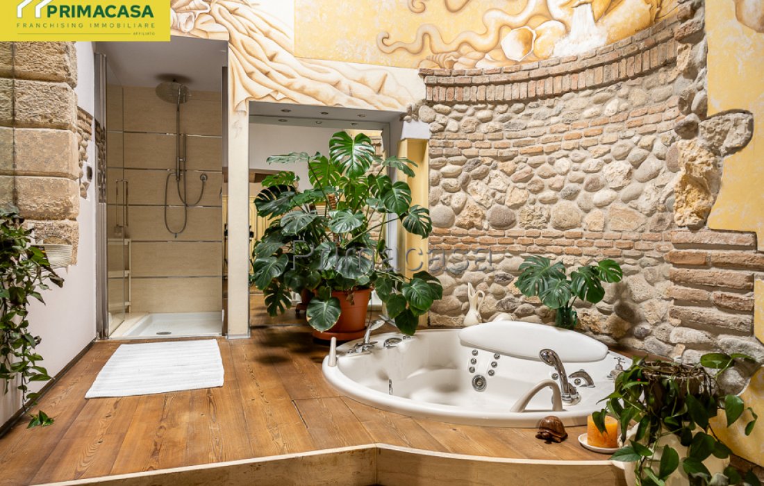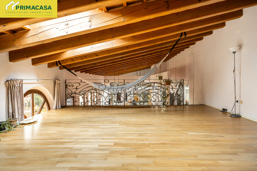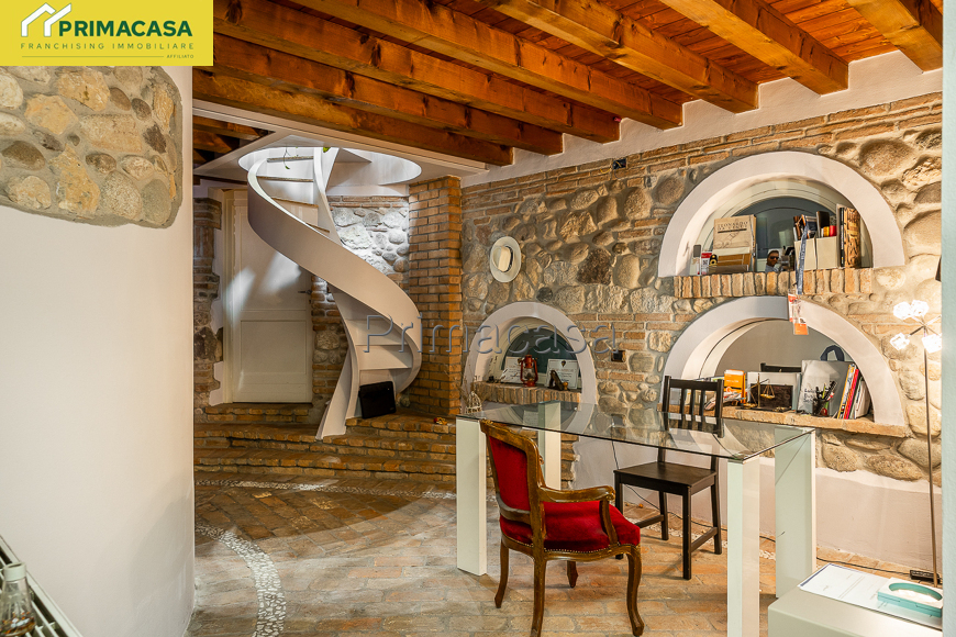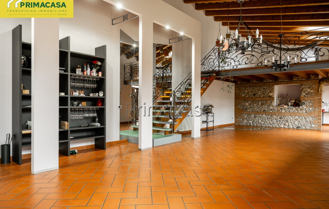 In centro paese, a pochi passi da tutti i servizi di prima necessità, in contesto di corte, ampio rustico finemente ristrutturato disposto su due livelli, composto al piano terra da soggiorno con camino e cucina a vista (90 mq circa), locale ad uso studio, bagno di 15 mq con doccia e vasca idromassaggio, lavanderia, 2 ripostigli, locale tecnico e garage di 100 mq circa; al piano primo da soppalco da 36 mq circa con vista sulla zona giorno, disimpegno, camera da letto matrimoniale con cabina armadio, camera da letto doppia con bagno privato e cabina armadio e camera da letto con bagno privato e piccolo ripostiglio. Rif. 2875
