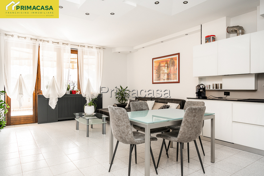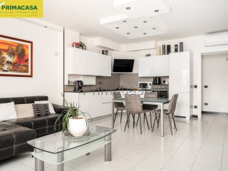 In zona centrale a pochi passi dalla piazza principale, spazioso appartamento al piano primo con terrazzo abitabile di 16 mq circa composto di soggiorno con angolo cottura (32 mq circa), 3 camere da letto, 2 bagni finestrati, ripostiglio e balcone. Due garage al piano interrato. Rif. 2898