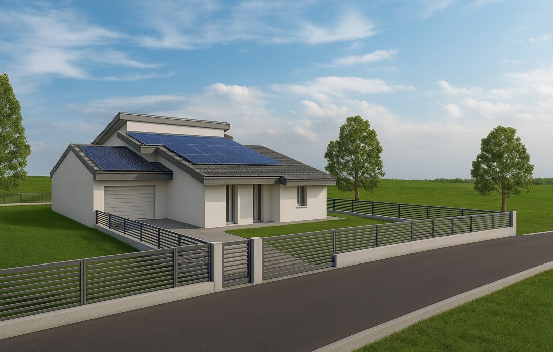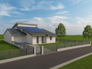 NUOVO: in zona residenziale a pochi passi dal centro paese, su lotto di 550 mq circa, villa singola in classe A4 disposta su un unico livello, con giardino privato di 350 mq circa, composta da soggiorno con cucina a vista (52 mq circa), 4 camere da letto, 2 bagni finestrati e lavanderia. Garage doppio in lunghezza al piano terra. Impianto fotovoltaico da 6 kW, riscaldamento a pavimento in pompa di calore e travi a vista. Possibilità di personalizzare le finiture. Rif. 2836