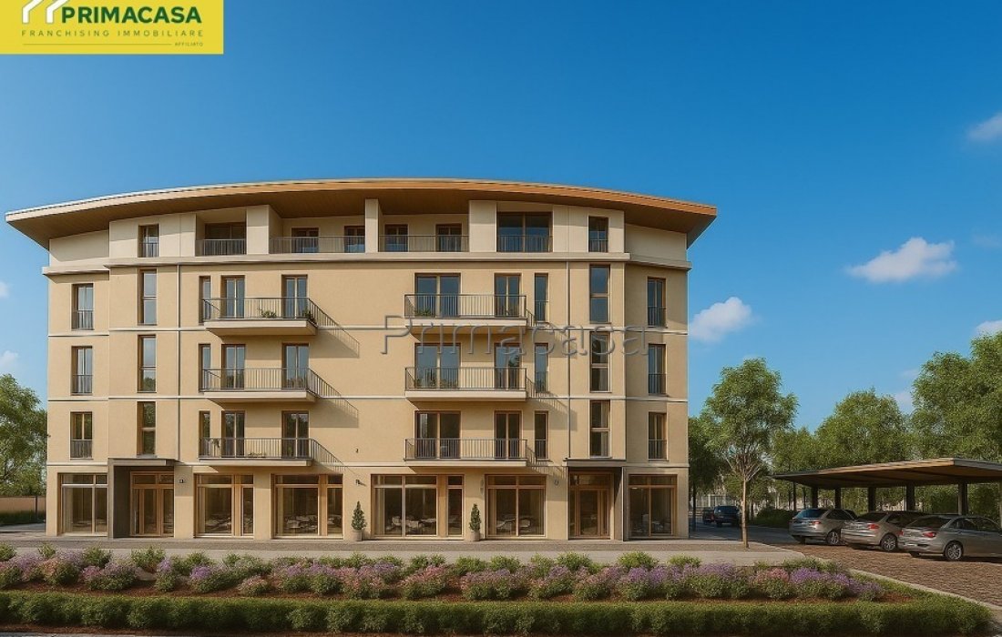 NUOVO COMPLESSO RESIDENZIALE "DIANA": Attico in classe A4 con terrazzo coperto al quarto ed ultimo piano composto di soggiorno con angolo cottura (41 mq), 3 camere da letto, 2 bagni e 3 balconi. Garage. Riscaldamento a pavimento in pompa di calore, impianto fotovoltaico condominiale, VMC, impianto di climatizzazione, infissi in PVC, cappotto da 14 cm. Rif. 2841