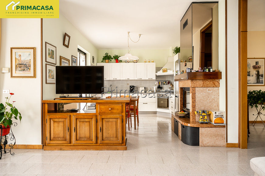 In zona collinare con vista dominante sulla vallata, porzione di bifamiliare disposta su un unico livello, composta di soggiorno con cucina a vista (45 mq circa), 3 camere da letto e 2 bagni. Lavanderia, ampia taverna, sala giochi, cantina e centrale termica al piano seminterrato. Garage al piano terra. Lavori di ristrutturazione eseguiti: impianto fotovoltaico da 6 kW, cappotto esterno, facciate, bagno, impianto di climatizzazione. Rif 2891