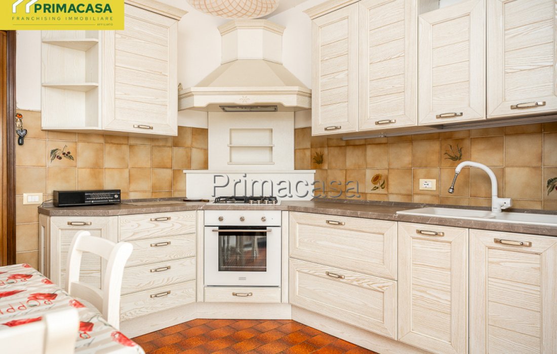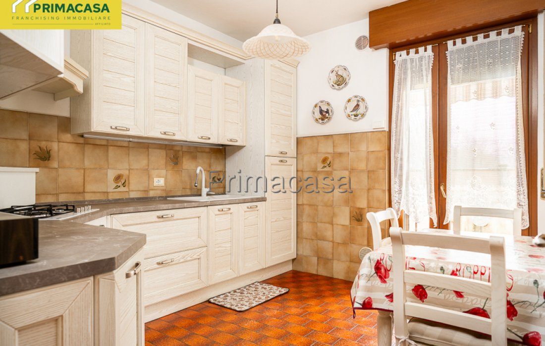 A pochi passi dal centro paese, spazioso quadrilocale al piano terra composto di soggiorno, cucina, 2 ampie camere, 2 bagni finestrati, terrazzo abitabile e balcone. Cantina e garage. Rif. 2877