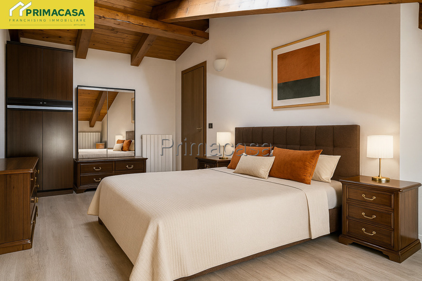 In zona centrale, a pochi passi dai servizi di prima necessità, villetta a schiera su 3 livelli con giardino privato inserita in piccolo contesto di corte composta di soggiorno con cucina abitabile (40 mq circa), 3 ampie camere da letto, 2 bagni, lavanderia, taverna con camino di 35 mq circa e garage singolo al piano interrato. Rif. 2507
